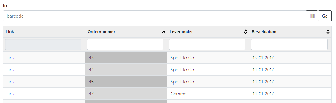 Vervolgens verschijnt er een lijst met alle nog niet geleverde inkooporders: