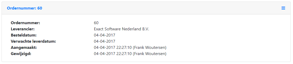 Na het zien van de volgende boodschap is de inkooporder bijgewerkt in Exact Online.